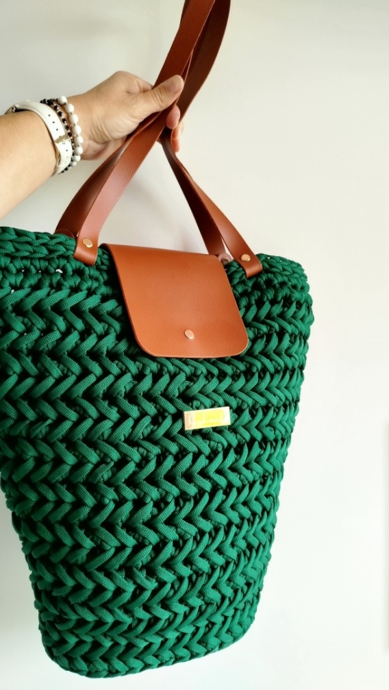 Torba-koszyk wykonana ręcznie za pomocą szydełka. Elementy nie-szydełkowe: paski i klapka to skóra naturalna. Piękno i funkcjonalność połączone zostały w jedno. Torba jest ULTRA lekka i baaaardzzzoooo trwała, a przede wszystkim jej kolor nie blednie z czasem. Wyplatanie torby ze sznurka sprawia, że każdy egzemplarz jest jedyny w swoim rodzaju. Zabierzesz ją ze sobą na zakupy, na spacer i do pracy - pójdzie za Toba wszędzie tam gdzie Cię nogi poniosą :)